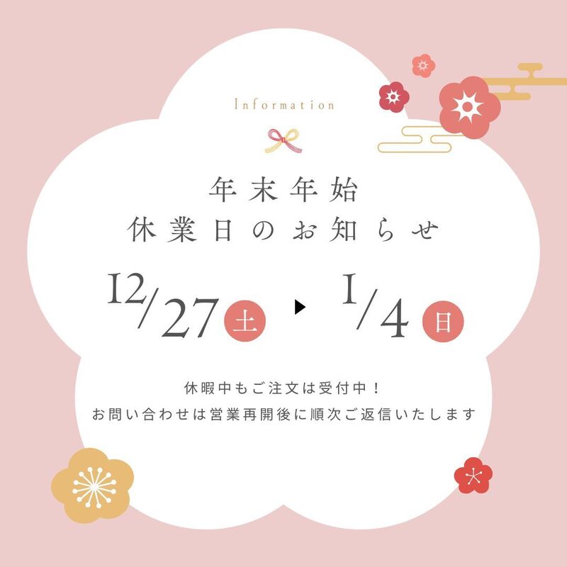 2025.12.24 お知らせ 長期休暇のお知らせ ■冬季休業期間2025年12月27日(土)~ 2026年1月4日(日)誠に勝手ながら長期休暇とさせて頂きます。この間のお問合せのお返事、商品の発送はお受けできませんので十分ご注意下さい。なお、この間のご注文はお受け致しますが、発送業務、お問合せのご返答はできません。休業期間中にいただいたお問い合わせ、ご注文につきましては、2026年 1月 5日以降に順次回答、発送させていただきます。皆様には大変ご不便をお掛けいたしますが、ご理解のほどお願い申し上げます。 pdfはこちら